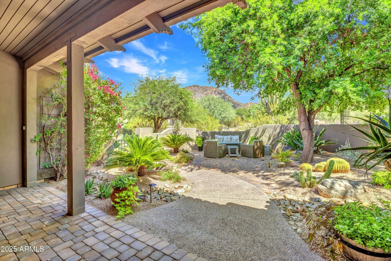 IMMEDIATE GOLF MEMBERSHIP AT CLOSE OF ESCROW.Home being sold fully furnished and move-in ready (exclusions apply).Charming front entry courtyard with beautiful mountain views as a backdrop. Capturing the spirit of casual elegance at its finest, the great room floor plan offers a sliding wall of windows for seamless indoor/outdoor living. Spacious kitchen and dining, light and bright, overlooking the beautiful backyard. A true owners retreat, grand in size, with private access to the backyard + office/sitting room, luxurious private bath and walk-in closet. For the privacy of guests, each secondary bedroom offers an ensuite bath. Stunning backyard with heated pool and spa, beehive fireplace, large covered dining & more! For Desert Highlands membership information, click More Designated a top Platinum Club of America golf club, Desert Highlands amenities include a Jack Nicklaus championship golf course, 18-hole putting course, award winning clubhouse featuring Jacks gastropub, state of the art fitness center, Highlands Racquet Club featuring grass, clay & pickleball courts,& more. A $205,000 membership fee is due from buyer at close of escrow
