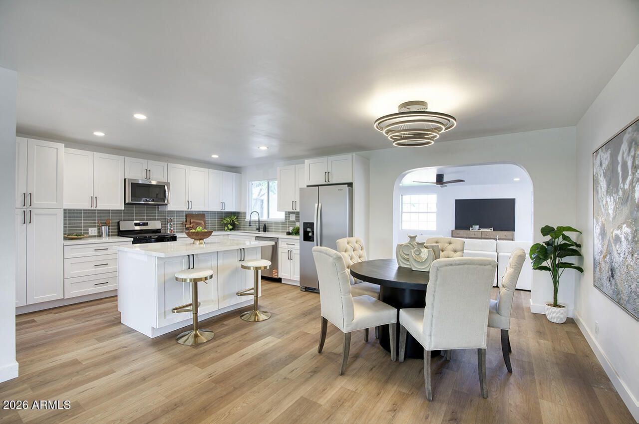 Stunning, fully redesigned home in the highly sought-after Grandview neighborhood of Melrose. This beautifully renovated 3-bedroom, 2-bath residence offers 1,710 square feet of thoughtfully reimagined living space, blending modern design with comfortable functionality.Completely transformed with the guidance of a professional designer, the home features brand-new flooring, fresh interior and exterior paint, a fully updated kitchen, remodeled bathrooms, new lighting, ceiling fans, and contemporary finishes throughout. The open and spacious layout creates a bright, welcoming atmosphere perfect for both everyday living and entertaining.A standout feature is the expansive bonus family room. ideal for a game room, media room, home office, or a combination of all three, flexible. Stunning, fully redesigned home in the highly sought-after Grandview neighborhood of Melrose. This beautifully renovated 3-bedroom, 2-bath residence offers 1,710 square feet of thoughtfully reimagined living space, blending modern design with comfortable functionality.Completely transformed with the guidance of a professional designer, the home features brand-new flooring, fresh interior and exterior paint, a fully updated kitchen, remodeled bathrooms, new lighting, ceiling fans, and contemporary finishes throughout. The open and spacious layout creates a bright, welcoming atmosphere perfect for both everyday living and entertaining.A standout feature is the expansive bonus family room. ideal for a game room, media room, home office, or a combination of all three, providing flexible space to fit your lifestyle.Located in one of central Phoenixs most desirable historic areas, close to shopping, dining, parks, and major corridors, this move-in-ready home offers the perfect balance of style, space, and location.