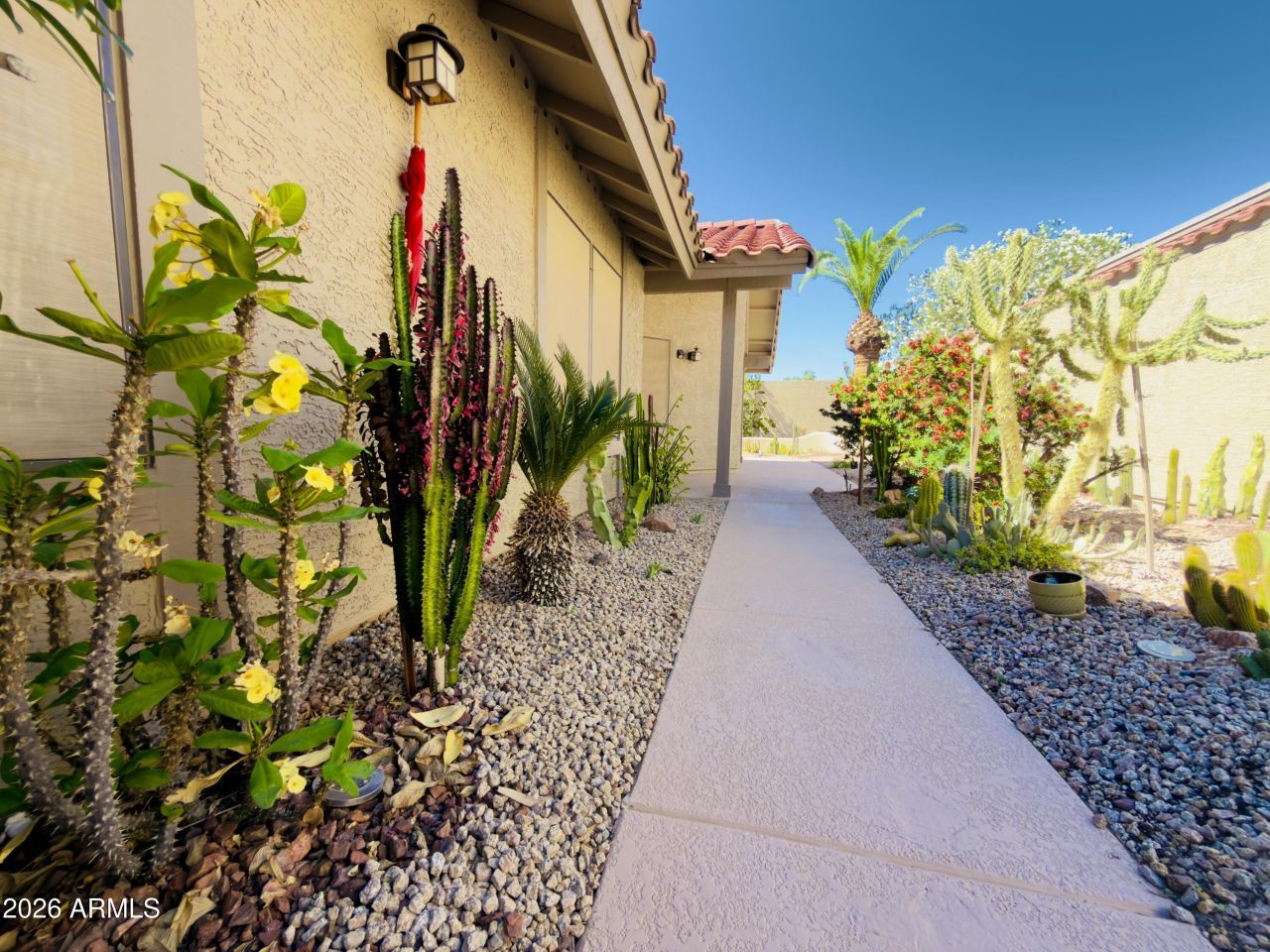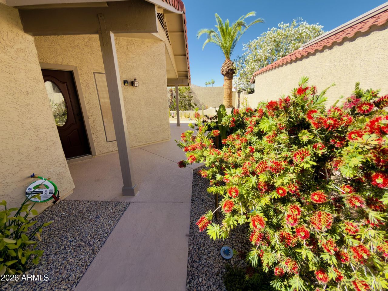 Enter the gate to the inviting tranquil garden sanctuary of this home. Private, quiet yard, with visiting hummingbirds, and other birds. Inside is a lovely living and dining space open to the spacious kitchen with granite and plenty of cabinets. Third bedroom is a double door den with a closet. There is a community pool and front landscaping is maintained for you, but you can also join Ahwatukee Swim, Tennis and Event center if desired...details at the ahwatukee community center.