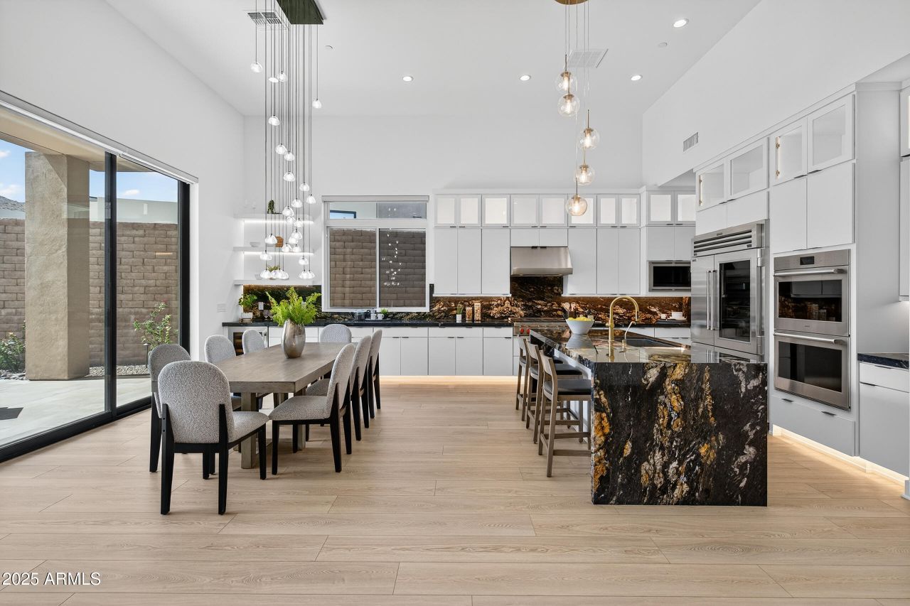 Some homes are beautiful. This one is transformative.Set within Fountain Hills coveted Adero Canyon Dark-Sky community, this 2023 contemporary masterpiece was built for those who live intentionally. The showpiece kitchen features Calacatta black marble waterfall islands, Sub-Zero and Wolf appliances, and LED-accented floating shelves flowing into a serving bar designed for effortless entertaining. Every bedroom suite offers a custom closet and a spa-inspired en suite with bronze Kohler fixtures and modern bidets. Dual-stage AC systems, enhanced insulation, and a whole-home water refinement system deliver quiet, spa-quality comfort year-round -- in both the main residence and private casita. Outdoors, a Zen-inspired limestone patio and sculpted Fibonacci meditation circle invite stillness beneath one of Arizonas most celebrated dark skies.With over $200,000 in wellness upgrades and THIRDHOME elite exchange eligibility -- access to 14,000+ luxury properties in 100 countries -- this is the rare home that gives back as much as it offers.