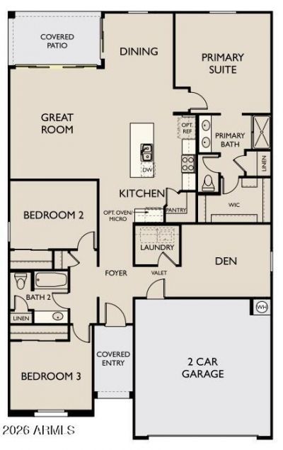 Welcome to the beautifully designed Marigold floorplan in Retreat at Stonebridge Manor, offering 1,777 sq. ft. of bright, open living space tailored for modern living. This thoughtfully crafted home features 3 bedrooms, 2 baths, a versatile den, and a spacious 2-car garage, plus a generous backyard perfect for relaxing or entertaining. Inside, enjoy elegant 8x36 plank tile flooring and plush carpeted bedrooms for added comfort. The chef-inspired kitchen showcases our Roosevelt Collection with 42 espresso-stained cabinetry, satin nickel hardware, Carrara Breeze quartz countertops, a mosaic Carrara backsplash, pendant pre-wire, and stainless steel appliances. A 4-panel center sliding glass door opens to the covered patio, creating seamless indoor-outdoor living. Additional features include a soft water loop and garage door opener, completing this exceptional home.