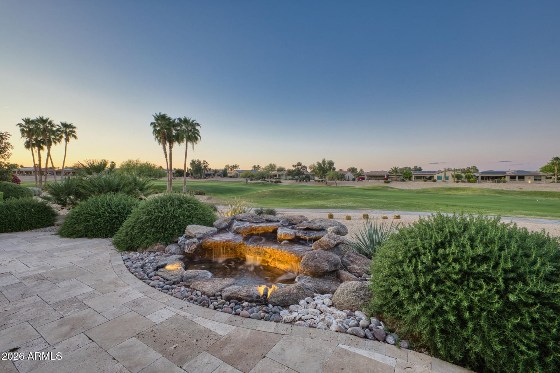 Highly sought-after Mission plan with extended garage & fantastic golf course views of Cimarron #5 fairway from the dining room, living room & primary suite. Beautiful travertine patio features a built-in BBQ & fountain--perfect for outdoor entertaining.Open-concept kitchen offers ample storage & granite countertops, flowing into two dining areas for easy entertaining. Spacious primary suite includes private patio access. Bedroom 2 is ensuite for your visitors comfort. Flexible 3rd room ideal as a den or craft/hobby room.Upgrades include top-quality built-in cabinetry, upgraded windows, newer A/C, new stainless steel oven & range hood, new water heater-2026 & interior paint 11/2025.Very clean, meticulously maintained one-owner home. Cost-effective Solar system w/utility savings & rebates.