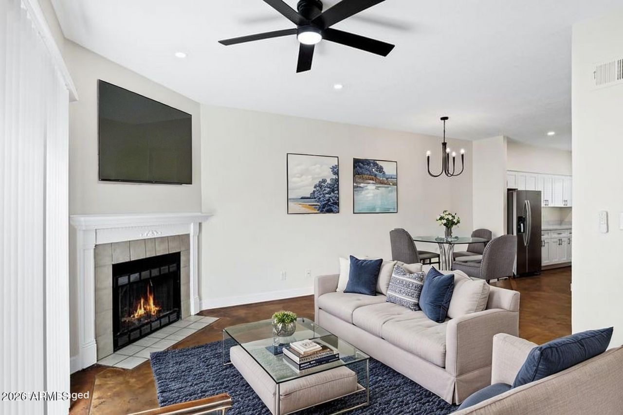 This fully-reimagined townhome in Morten Villas offers a rare, turn-key opportunity in the heart of North Central Phoenix. Every detail has been meticulously upgraded: from new recessed lighting to the chefs kitchen featuring quartz countertops, new cabinetry, and a full suite of new appliances. The open-concept living area flows over sleek stained concrete floors toward a cozy, wood-burning fireplace and a private, fenced backyard--ideal for pets or morning coffee. Both bathrooms have been elegantly updated with new vanities, and a new custom shower.Enjoy the convenience of two dedicated parking spaces (one covered), newer windows, and a community pool just steps from your front door. Perfectly positioned in the center of town, you are within walking distance to the Light Rail and local amenities. Move-in ready with zero deferred maintenance--this home has the style and convenience youve been looking for.
