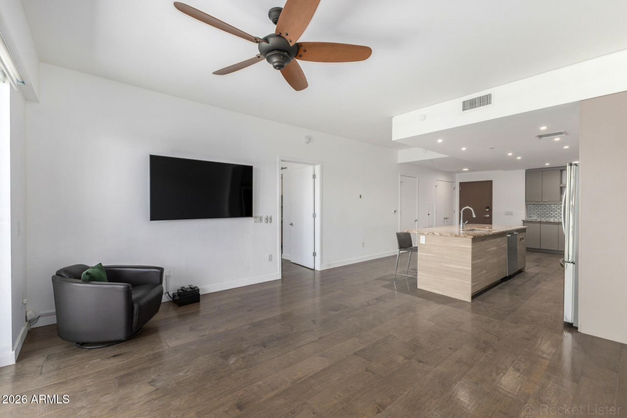 Welcome home! This home is highly upgraded, boasting a gourmet style kitchen, upgraded appliances, customized cabinets adding extra storage, and space for under counter microwave. Gorgeous hard wood floors, new slider, with remote controlled blinds. Primary suite, has a huge walk in closet with dual vanities. A whole house water filtration system and an oversized hot water heater. The homeowner paid so much attention to detail! Easy to entertain and enjoy sunsets with a gorgeous 20 x 15 OVERSIZED patio. Located in the highly desired Biltmore Area. This resort style community equipped with 2 story fitness center, pool, clubhouse, and roof top patio with tremendous views, fire pits,BBQs, gated covered parking, building security system and door key fobs for extra security