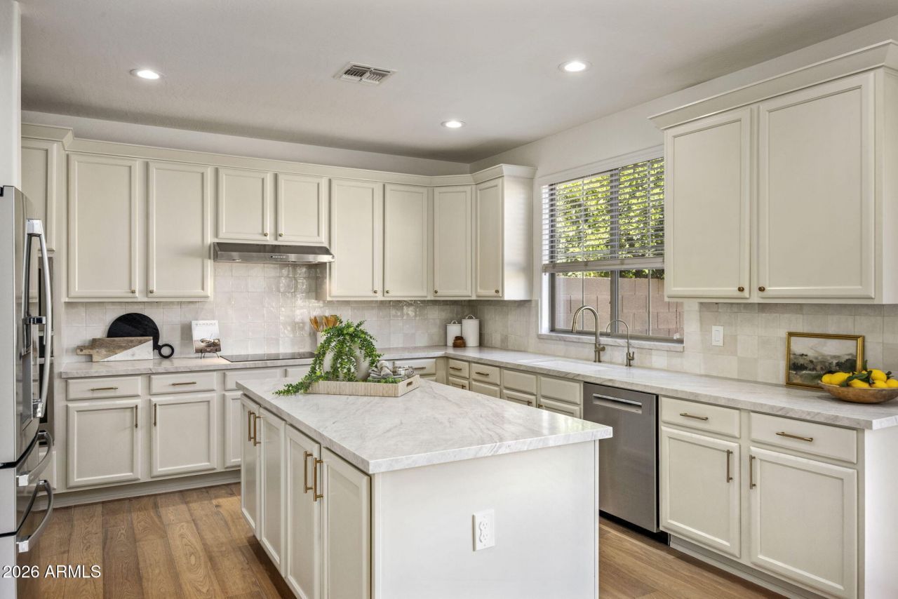 Step into this fully remodeled Toll Brothers home in the award-winning master planned community of Aviano at Desert Ridge. Located in North Phoenix near Desert Ridge Marketplace, High Street, Scottsdale Quarter, and Kierland Commons. This turnkey luxury home boasts over $200k in upgrades. It offers 3 bedrooms plus a den/optional 4th bedroom, two flex spaces, and a loft--perfect for a home office, gym, media room, or multi-generational living.The fully remodeled chefs kitchen features Taj Mahal quartz countertops, new stainless-steel appliances, and new lighting in an open-concept layout ideal for entertaining. The primary suite boasts a walk-in closet and beautiful fully remodeled spa-style bathroom with a freestanding soaking tub. Additional upgrades include white oak hardwood floors remodeled bathrooms throughout, fresh paint, new baseboards, a remodeled family room with stone fireplace and entertainment niche, and a new HVAC system (2024) for comfort and efficiency.Enjoy your private backyard oasis with turf landscaping, updated irrigation, and a custom pergola with fan, lighting, and 120 projector screen, perfect for Arizona evenings and outdoor living.Residents enjoy resort-style amenities including a clubhouse, pool, fitness center, and scenic walking paths, with easy access to Loop 101, SR-51, and I-17. This home combines modern upgrades, functionality, and an unbeatable North Phoenix location--a rare opportunity!