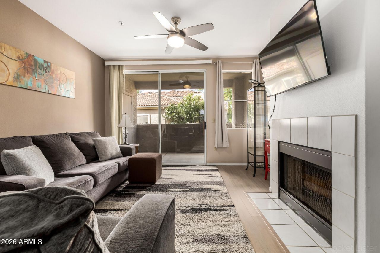 Desert living at its finest! Near 40th St & Chandler Blvd shops/dining (walking distance to Trader Joes/Safeway/Starbucks) * BRAND NEW stainless steel appliances! Portofino Condominiums in Ahwatukee Foothills. Second-story 1 bed/1 bath FULLY FURNISHED with an open living/dining layout, breakfast bar kitchen, and living room fireplace. Brand-new stainless steel appliance package. Private north-facing balcony/patio with exterior storage closet. Bedroom with WALK-IN CLOSET; full bath. In-unit laundry with full-size washer/dryer included. Assigned covered parking (carport).Community features include biking/walking paths, clubhouse/rec room, media room, workout facility/fitness center, and community pool with heated pool and heated spa options. Easy access to I-10 and Loop 202