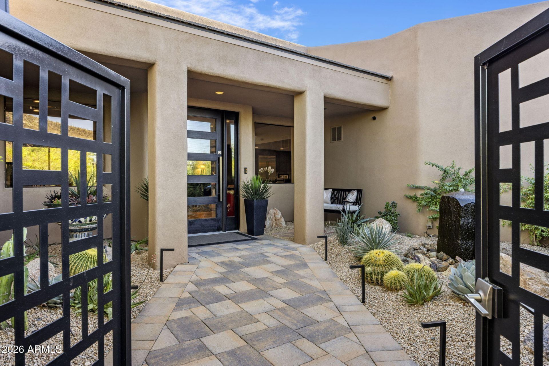 Tucked at the end of a quiet cul-de-sac in Desert Mountains Gambel Quail, this soft desert contemporary estate offers over 4,200 square feet of refined living on a private, usable acre with mountain views. Thoughtfully updated with a warm, modern aesthetic, the home features 4 spacious bedrooms, all ensuite, 2 half baths, and multiple indoor and outdoor living spaces designed for both comfort and entertaining.French oak hardwood floors run throughout, complemented by new designer lighting and a cohesive, elevated finish palette. The kitchen is outfitted with premium Thermador appliances, double ovens, and opens to a stylish bar area and an impressive 700+ bottle wine wall just off the dining room. The primary suite is a true retreat, complete with a stacked stone fireplace and direct... ... access to the outdoor living areas.Each bedroom enjoys its own patio access, creating a seamless indoor-outdoor lifestyle. The resort-style backyard has been completely reimagined with all new landscaping, and features an outdoor kitchen equipped with a pizza oven and smoker--ideal for entertaining under the Arizona sky. With three fireplaces, pool bath access, and a coveted Desert Mountain Lifestyle Membership available, this home offers a rare blend of privacy, design, and functionality in one of North Scottsdales most sought-after communities.