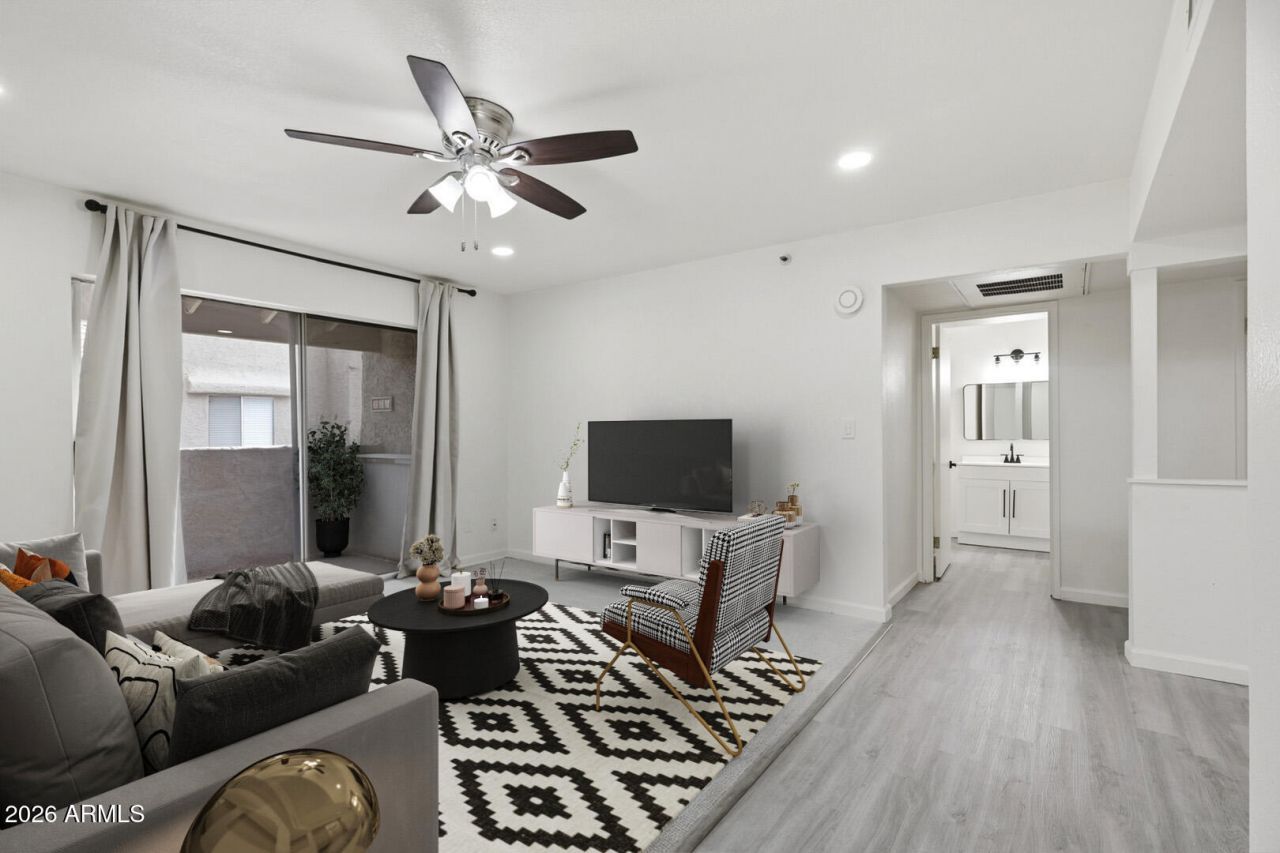 LOCATION! LOCATION! LOCATION! Freshly remodeled condo in Prime Location, just steps from the exciting Paradise Valley Mall redevelopment, scheduled for completion in late 2026. Enjoy future walkability to premier dining, shopping, and entertainment including Flower Child, Costco, Whole Foods, Harkins Ciné Grill, and more right across the street.This updated unit features new vinyl plank flooring, upgraded carpet, modern LED lighting with adjustable tones, and new ceiling fans with remote controls. The redesigned kitchen offers white shaker soft-close cabinetry, granite countertops, and stainless steel appliances including a new dishwasher, microwave, refrigerator, new sink, faucet, and garbage disposal & new plumbings.Bathrooms have been tastefully updated with new vanities,. Bathrooms have been tastefully updated with new vanities, mirrors, faucets, lightings. Youll also appreciate new outlets, a covered patio with additional storage space.Community amenities include a sparkling pool and on-site laundry. HOA covers water, sewer, trash, roof, cable and exterior maintenance.An incredible opportunity in a rapidly growing area ,perfect for homeowners or investors alike!