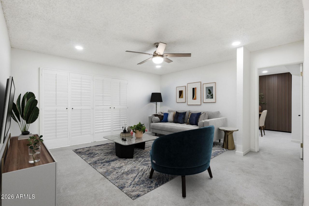 NEW! STUNNING REMODEL! Prime Location! Beautifully renovated condo featuring quality upgrades throughout! Enjoy new vinyl plank flooring and carpet, soft-close white shaker cabinets, elegant granite countertops, and a modern backsplash. The kitchen shines with stainless steel appliances including a new oven, dishwasher, microwave, refrigerator, new sink, faucet, and garbage disposal & new plumbings.Bathrooms have been refreshed with new vanity, mirrors, faucets, and two brand-new toilets. Additional upgrades include adjustable-color LED lighting, new ceiling fans with remotes, new outlets, and cable connectivity. Relax on the newly covered patio with extra storage.Located just steps from the highly anticipated Paradise Valley Mall redevelopment (completion expected late 2026), featuring high-end dining, retail, and entertainment including Flower Child, Costco, Whole Foods, Harkins Ciné Grill, and more right across the street!Community amenities include a swimming pool and community laundry. HOA covers water, sewer, trash, roof, cable and exterior maintenance.Modern updates, unbeatable location, and incredible value dont miss this opportunity!