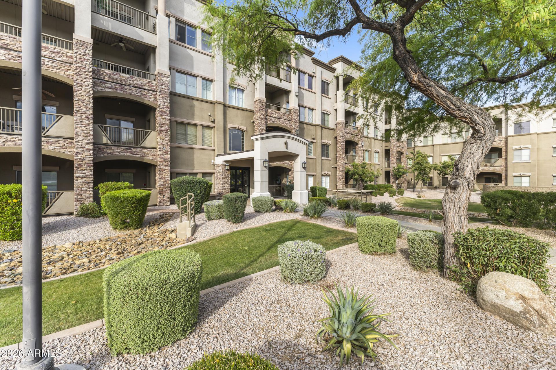Toscana of Desert Ridge! Indulge in the comfort, convenience, and resort-style living of this light and bright corner, ground-floor 2-bedroom, 2-bath Milano condo, just steps from the pool and packed with upgrades! Featuring a split-bedroom layout, built-in office desk, and 2 parking spaces, this home boasts black stainless steel appliances, stackable washer/dryer tower, limestone flooring, and engineered bamboo floors in the bedrooms. Enjoy a gas fireplace, plantation shutters, granite counters, updated cabinets with hardware, LED recessed lighting. The Toscana community offers an unmatched lifestyle with lush grounds, a guard-gated entry, 3 heated pools, 3 clubhouses, 2 modern gyms, yoga/stretching studio, business center, teen activity room, walking paths, BBQs, and electric car... chargers. Steps from 60+ restaurants, shopping, entertainment, the Desert Ridge Mall, and Mayo Clinic, plus nearby golf at Wildfire Golf Club and easy access to I-101 and I-51. Enjoy proximity to City Norths new urban core, Scottsdale events like Barrett-Jackson, Phoenix Open, Arabian Horse Show, and more--where every day feels like a vacation!