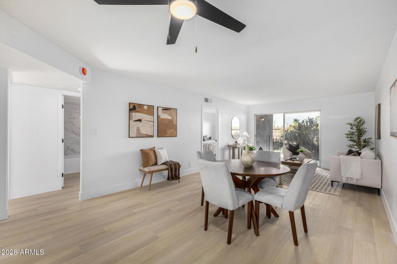 Located in Scottsdales desirable 85250 zip code just minutes from Old Town Scottsdale and Scottsdale Fashion Square, this fully renovated condo offers style, comfort, and convenience. The bright open layout is filled with natural light, creating an inviting living space. The updated galley kitchen features beautiful cabinetry and ample counter space. The home offers two spacious bedrooms and two full bathrooms. Enjoy your morning coffee or evening drink on the private balcony overlooking the community pool. The unit also includes a covered carport space. Residents enjoy a sparkling pool, clubhouse, greenbelts, and beautifully landscaped grounds. With its prime Scottsdale location and strong rental demand, this property is also an amazing investment opportunity.