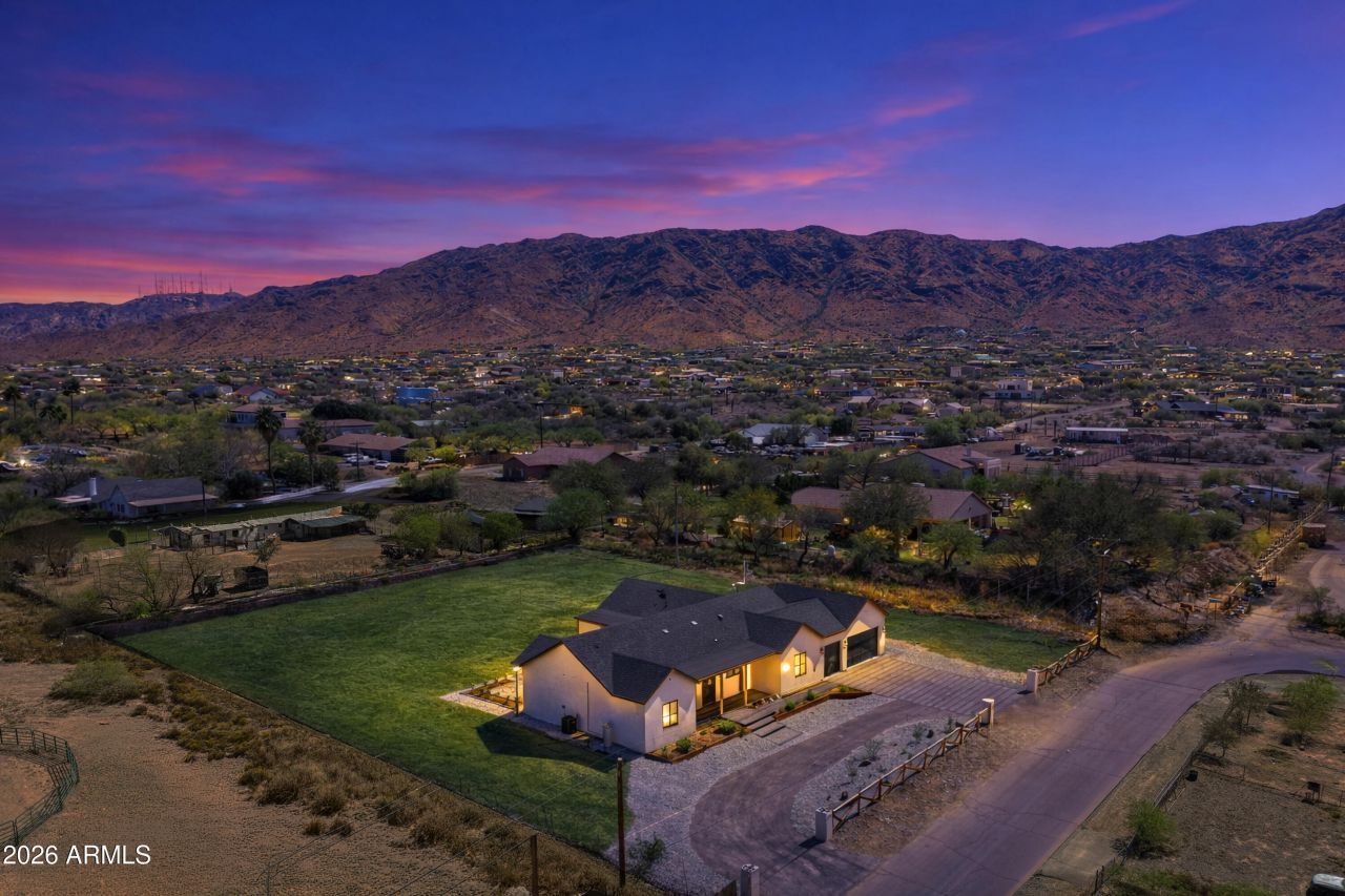2024 custom 4 bed, 2.5 bath home on nearly 1 acre in Laveen with a rare off-grid feel, shared well, SRP flood irrigation, septic, propane, & no HOA. Slightly elevated lot enjoys mountain & valley views. Inside, soaring 10+ ft ceilings, open floor plan, fresh interior paint, vinyl flooring throughout, flush-mounted Sonance/Sonos speakers, & designer finishes throughout. The kitchen features upgraded custom cabinetry, quartz countertops, Wolf range, & a huge island w/ breakfast bar seating. Spa-like primary bath features a freestanding soaking tub & glass-enclosed walk-in shower with floor-to-ceiling tile. 3-car garage offers epoxy flake floors, extensive built-in cabinetry, & an extra-long multi-station workbench with drawers. Custom front/back paver design & plenty of room for horses. Since the prior sale, the home has been significantly upgraded with new quartz kitchen countertops, new kitchen cabinets, new bathroom shower fixtures, epoxy garage flooring, added garage cabinetry, a new water softener, a new Wolf stove, flush-mounted living room speakers, and new landscaping with custom paver design work.Additional improvements include exterior cameras, water filtration, a custom barn door at the primary bath, attic storage in the garage, and an extra-long multi-station workbench with drawers that creates exceptional storage and workspace.The nearly 1-acre horse property offers room for horses, toys, trailers, a pool, trampoline, and future additions such as a detached shop, horse barn, or stables. The slightly elevated setting enhances the sense of space and showcases beautiful valley and mountain views. The chefs kitchen is anchored by a huge island with breakfast bar seating and a Wolf stove. Seller states approximate costs are about $25/month for water, about $200/year for propane, and about $150/year for flood irrigation.