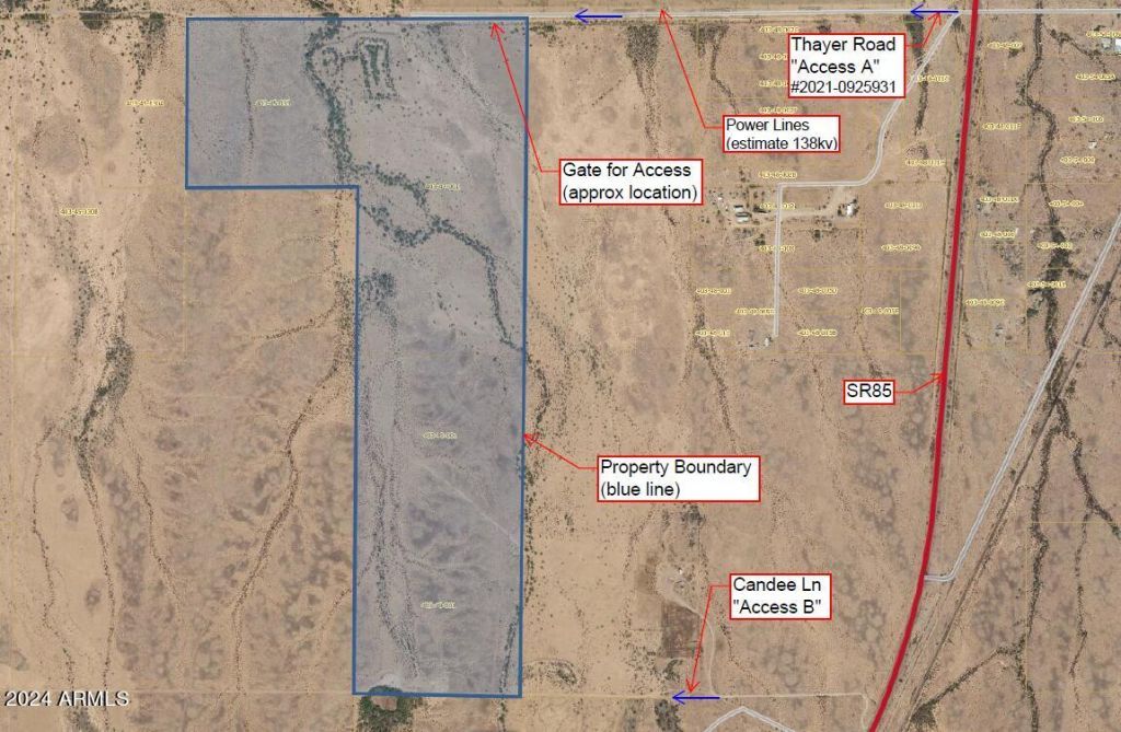 Multiple opportunities/options to improve this 200 ac property (3 parcels combined) near Gila Bend! Gila Bend is poised for commercial/industrial growth due to its strategic location. Property is located in the County but directly adjacent to the town limits. Land use changes or variances are reportedly relatively easy to do in the County. Quick access to SR85 and the routes of I-8, Maricopa Road & SPRR (railroad) making this property ideal for manufacturing and transporting products. High voltage power is adjacent to the lot on Thayer Rd. Property is very flat which is good for solar generating, common in the area. Its within the Gila Bend planning area and identified as industrial zoning. Adjacent to farming & an irrigation canal and across SR85 from a paper mill. 2 wells on property